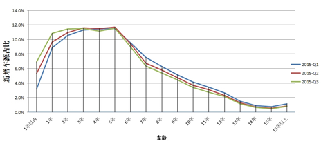 二手車不同于新車,一車一況,一車一價,談到二手車的買賣,就不得不提影響二手車買賣的因素,在58同城汽車研究中心曾經(jīng)對二手車消費者做的一次消費行為調(diào)研中我們看到,1-3年左右的“準新車”是45%左右消費者購車首選,3-5年車齡的二手車也占到消費者接受度的三成。通過58同城汽車最新發(fā)布的二手車車源增長數(shù)據(jù)又看到,從2015年第一季度到2015年第三季度,車齡一年以內(nèi)的二手車源第三季度比第一季度提升了4%,車齡在1年和車齡在2年的二手車源,第三季度比第一季度分別提升了2%和1%。整體來講,目前二手車市場的二手車車齡集中在1-5年內(nèi), 5-13年車齡的二手車源占比逐步下降,新增車源的占比呈現(xiàn)年輕化趨勢。此數(shù)據(jù)的增長也證明了二手車的流通性開始越來越強,交易越發(fā)活躍,見證著二手車行業(yè)的飛速發(fā)展。