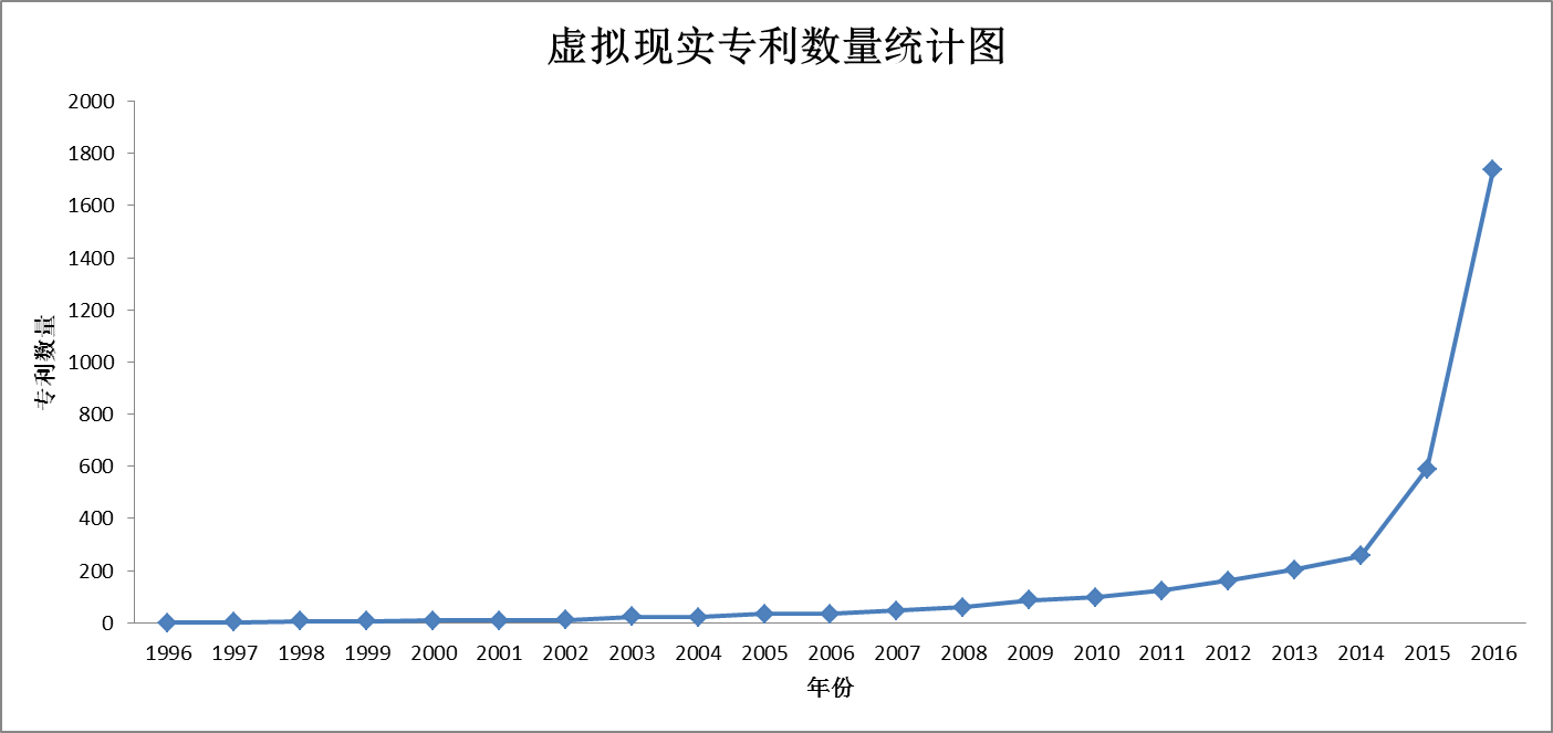 2) 1996年至2014年期間我國的VR技術(shù)處于起步階段,2015年以來的這兩年,雖然有突飛性發(fā)展,但依然不夠成熟。