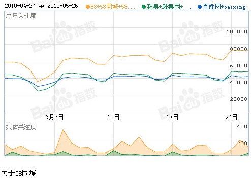 百度指數(shù)顯示 58同城在用戶關(guān)注度和媒體關(guān)注度勝出