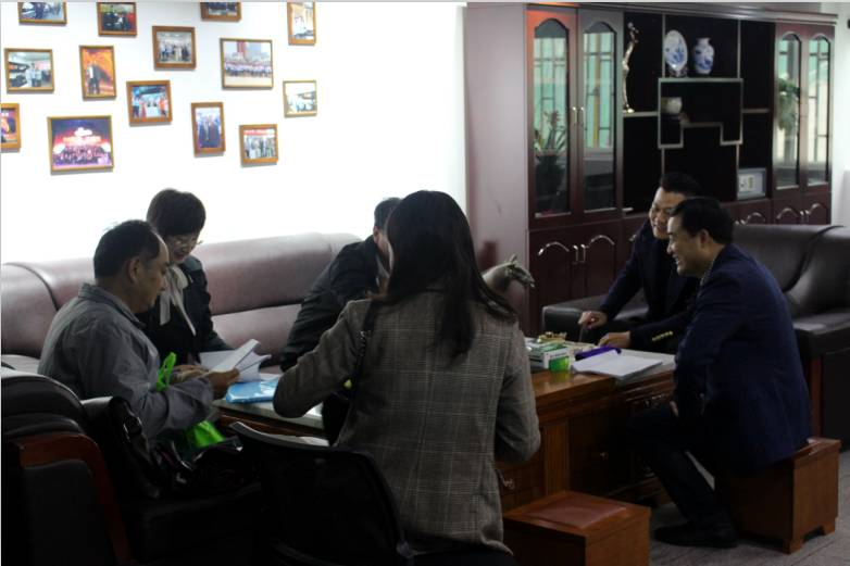 葉成松校長(zhǎng)及互聯(lián)集團(tuán)副總趙峰軍、龍金明為領(lǐng)導(dǎo)介紹企業(yè)文化