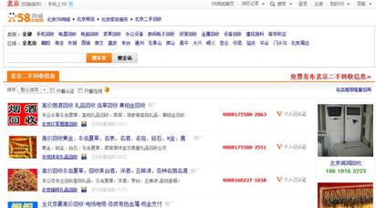 58同城北京商街二手回收頁面