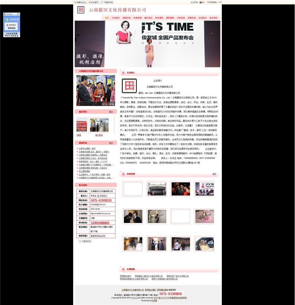 霸田:ba Tian 云南霸田文化傳播有限公司(Yunnan ba Tian Culture Communication Co., Ltd.)云南霸田文化傳播有限公司,是一家新成立于2010年以攝影、攝像、視頻后期、平面設(shè)計(jì)為主,在商業(yè)攝影攝像、活動(dòng)、會(huì)議、開業(yè)、慶典、生日、婚慶跟拍、各種聚會(huì)、拓展活動(dòng)、展會(huì)拍攝等積累了大量的經(jīng)驗(yàn)!現(xiàn)處于發(fā)展的關(guān)鍵時(shí)期,誠心與社會(huì)各界朋友合作共贏! 沒有虛高的價(jià)格,沒有超時(shí)以外的任何額外收費(fèi),我們秉承踏踏實(shí)實(shí)做事,明明白白收費(fèi),高高興興合作的理念,以專業(yè),用作品說話!很多人只看到價(jià)格,好像價(jià)格低就是沒有欺騙的觀念,無論是攝影攝像,沒有好技術(shù),沒有好后期,就沒有好作品,最后成片是什么樣子?在這魚龍混雜的市場,我們不和任何一家比價(jià)格,我們只和他們比作品、比服務(wù)、比質(zhì)量! 以最低價(jià)格直接面對客戶,減少中間環(huán)節(jié),以低價(jià)格、高品質(zhì)的服務(wù)響譽(yù)行內(nèi)。并創(chuàng)建了“營銷、技術(shù)、服務(wù)”三位一體的服務(wù)模式。
