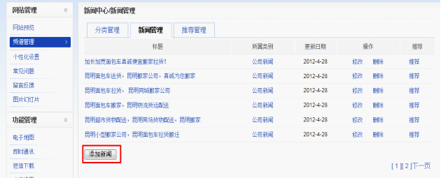 5、公司新聞里,點(diǎn)擊添加新聞,如下圖: