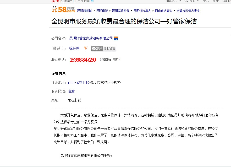 盡管目前保潔市場(chǎng)的生意火爆的讓人眼紅,但是家政服務(wù)市場(chǎng)受市場(chǎng)供求關(guān)系影響較大。中國(guó)的傳統(tǒng)大掃除只集中在年底,而其他時(shí)間市場(chǎng)卻顯得落寞許多。“除了一些寫字樓,或者新搬住宅聘請(qǐng)保潔外,其他很少有居民聘請(qǐng)保潔來做清潔”北京冰潔物業(yè)管理有限公司的負(fù)責(zé)人在采訪中告訴記者,“很多年輕白領(lǐng)沒有時(shí)間來店里咨詢,只能通過像58同城這樣的生活服務(wù)平臺(tái),預(yù)定保潔工。因此,公司為了搶占更多的市場(chǎng)份額,在58同城上開啟了"門面",使用58同城網(wǎng)鄰?fù)〞?huì)員服務(wù),交易安全并且有保障,而且還可以享有排序優(yōu)先、獨(dú)立域名、豪華裝修、實(shí)地認(rèn)證、400電話等會(huì)員功能,不管是對(duì)于增加顧客量還是提升口碑都有很大的幫助。”
